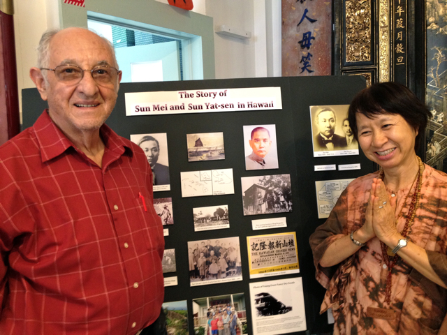 Father Eduardo, one of the most remarkable people the blogger has ever met left the cruise ship in Honolulu and traveled with us to our home in Maui, where he is an amazing house guests. He does the dishes, cleans crumbs from our toaster every day, T he 84 year old is hard to keep up with. Below he visits the Wo Hing temple on Front Street built by early Chinese immigrants who worked for the sugar mill and makes a salad. He also atteneded a Saturday night get together at our condo. More later after he says mass in our home this morning. On the second leg of its tour up to Alaska, the Soltice visited Maui and we met the ship to find embarking new friends. At sunset, we took father to Fleetwoods on Front St. where we could see the ship–our home for 18 days–befopre it departed. VOICES OF MAUI TALK STORY, LLC.