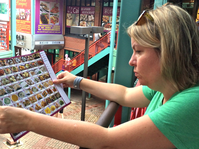 Daughter checks menu