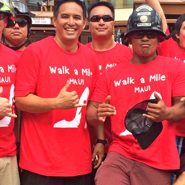 ON THE HIGH HEELS OF VICTORY, WEST MAUI CANDIDATE KA’ALA BUENCONSEJO MARCHES WITH FIREMEN at Woman Helping Woman Event