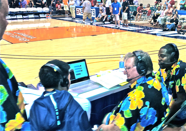 Lahaina, Dec. 9–The media and staff at the the Basketball Tournament last month. Here is an inside look. This year however the public address announcer who also does PA for the Chicago didn’t have a match right away so he could stay. And, media relations