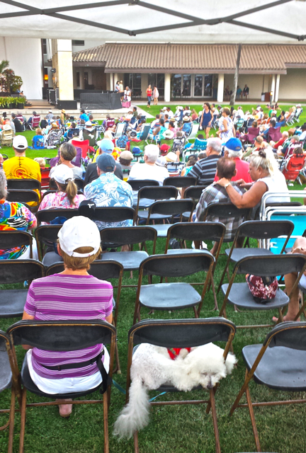 Kahului, Oct. 19–After a long day listening to music, the little dog Kea Aloha takes a nap as his master enjoys more of the same at the Maui Arts and Cultural Center./ WATCH FOR MORE COVERAGE OF THIS AMAZING EVENT LATER TODAY. Voices of Maui Talk Story/Norm Bezane photo. (Delayed for technical reasons).